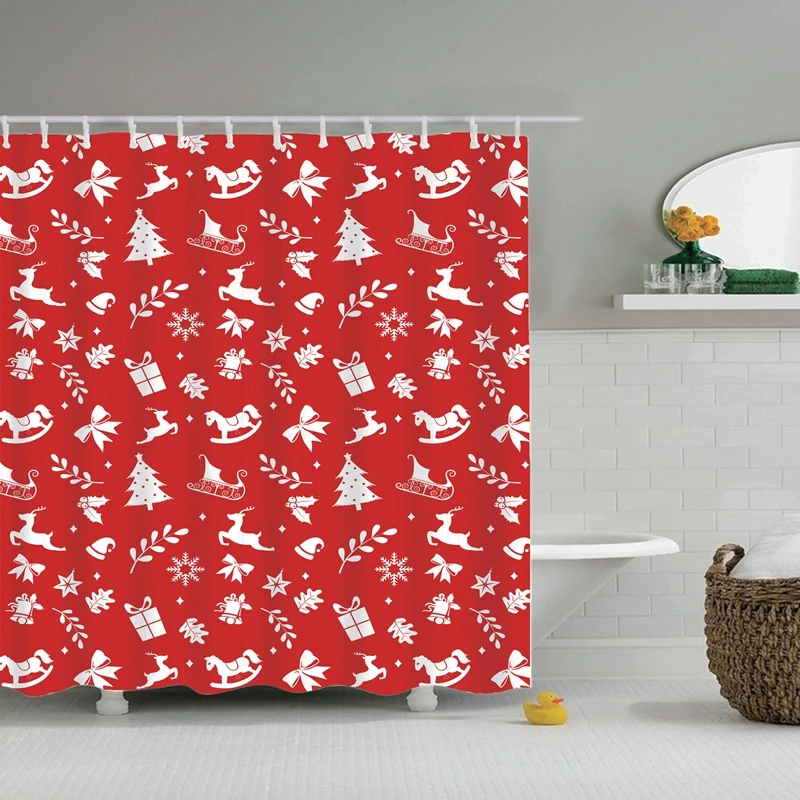 TOP Merry Christmas Happy New Year Santa Claus Christmas Tree Shower Curtain Bathroom Curtain With Hook