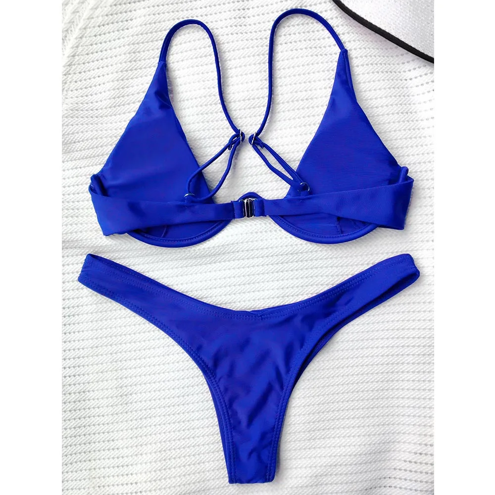 ZAFUL Underwired Plunge Bathing Suit Spaghetti Straps Low Waisted Women Swim Sets Beach Vacation So