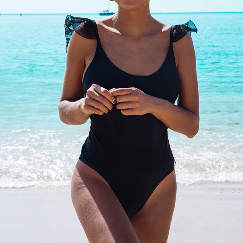 Review Top Summer Beach Swimwear Solid Ruffels Sexy Backless Cross Bandage Women Bodysuits Casual Female Boho