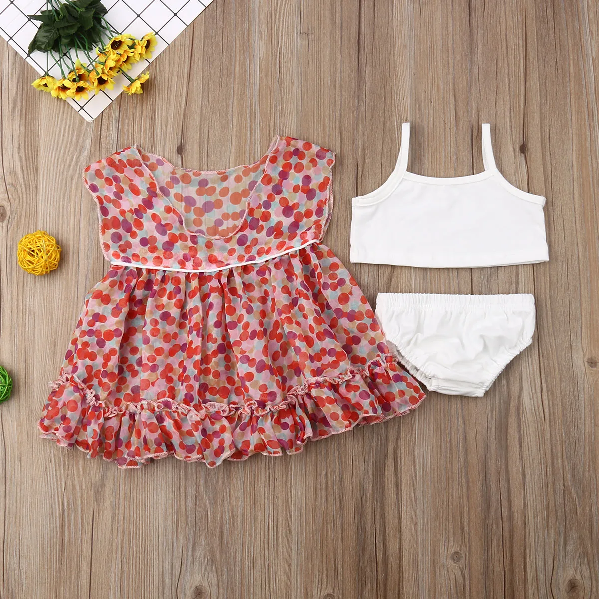 Infant Kids Baby Girls Dots Bikini Swimwear Bathing Beach Bikini Set + Chiffon Cover Ups 2019 Summe