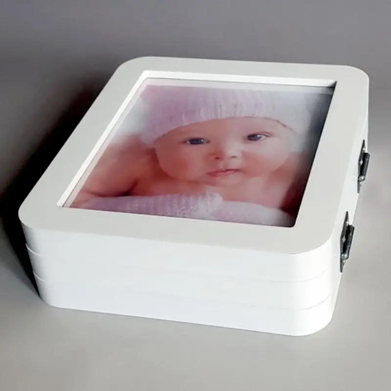 Baby Photo Frame Album 3 Folds Newborn Hand and Foot Prints Photos Frames Infants Birth Growth Comm