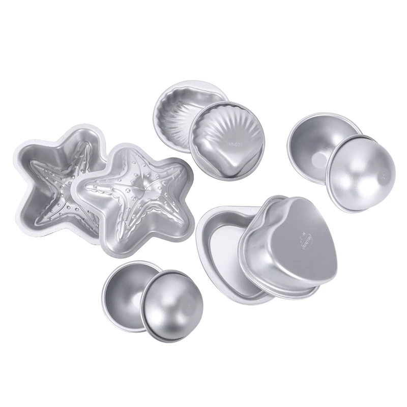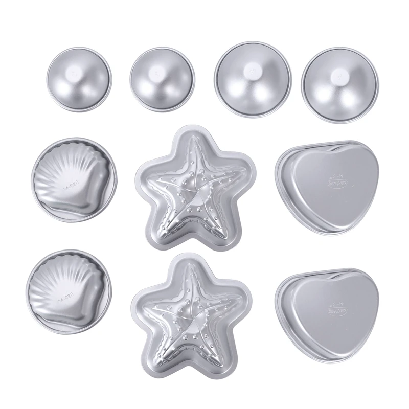 Metal Bath Bomb Molds Fizzies Set of 5 2 Shell Shape 4 Hemispheres (2-3/8 inch 2 inch ) 2 Heart Sh