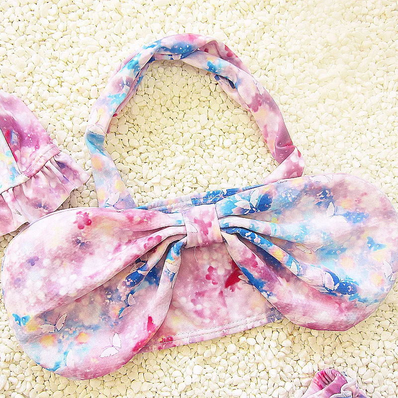 Summer New Children Swimwear Toddler Girls Split Swimsuit Baby Kids biquini Fly Sleeve Bowknot Biki