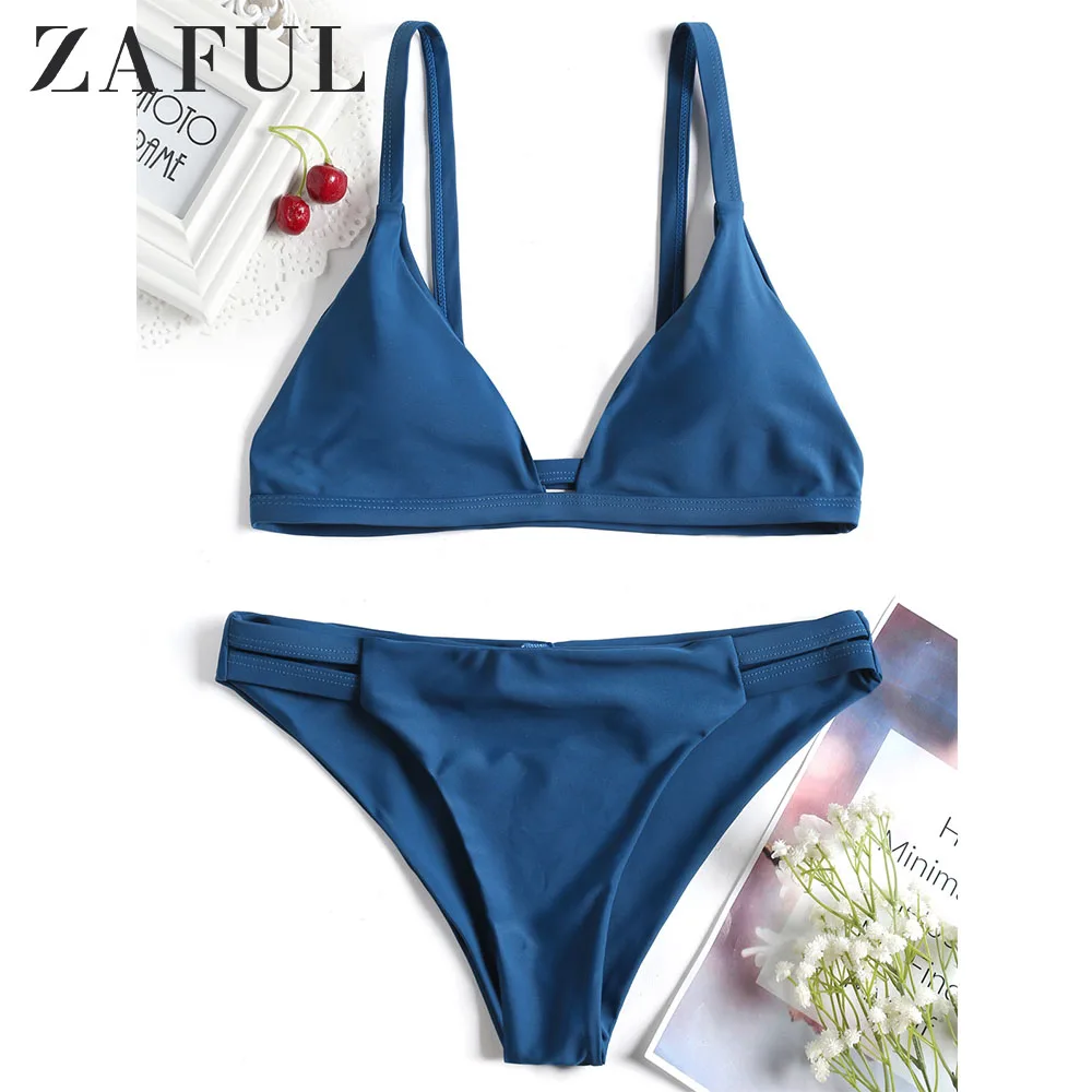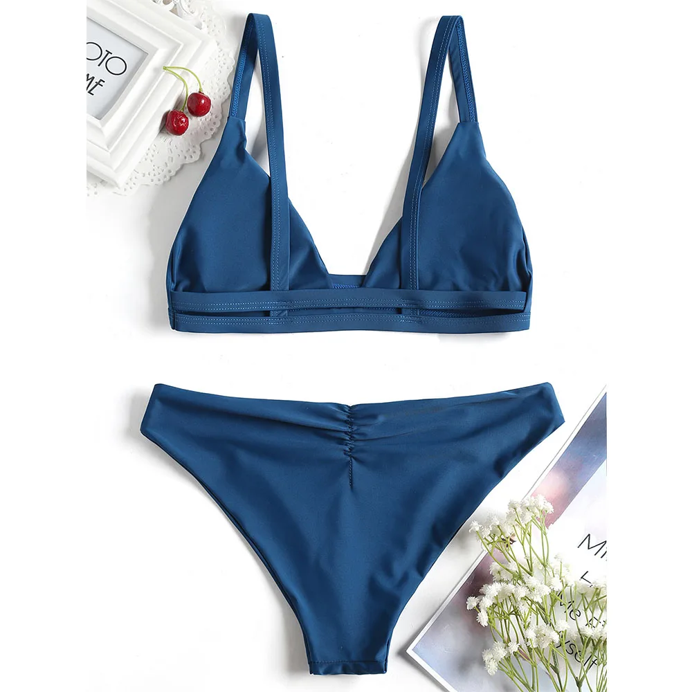 Best Seller ZAFUL Bikini Cami Ladder Cut Ruched Bathing Suit Wire Free Spaghetti Straps Elastic Swim Suit Padde